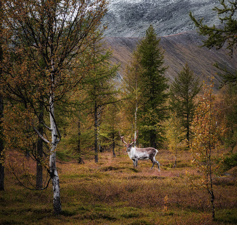 Олень (лат. Rangifer tarandus) – парнокопытное млекопитающее семейства оленевых, единственный представитель рода Северные олени (Rangifer). Северный олень – обитатель северных областей земли: тундры и тайги. Он хорошо приспособлен к жизни в условиях очень холодного, полярного климата. Высокие же температуры он переносит с трудом. Северный олень – мигрирующее животное. Миграции северного оленя заключаются в переходах с пастбищ одного сезона на пастбища другого сезона в течение годового цикла. Русское слово олень происходит от праслав. *elenь, от кот. в числе прочего произошли: др.-русск. олень, ст.-слав. ѥлень, восходит к праиндоевр. *elen-, *lān-.